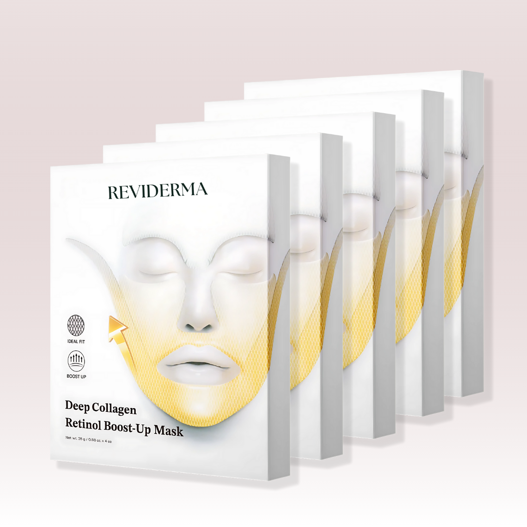 Maska Reviderma Retinol Lift zapewnia natychmiastowy efekt liftingu twarzy w 20–40 minut, modelując linię V i wygładzając zmarszczki mimiczne. Zawiera kolagen peptydowy, retinol i Volufiline™, które poprawiają elastyczność skóry, ujędrniają i dodają objętości. Dzięki elastycznej siatce heksagonalnej idealnie dopasowuje się do każdego kształtu twarzy, skupiając działanie na linii żuchwy, czole i bruzdach nosowo-wargowych.