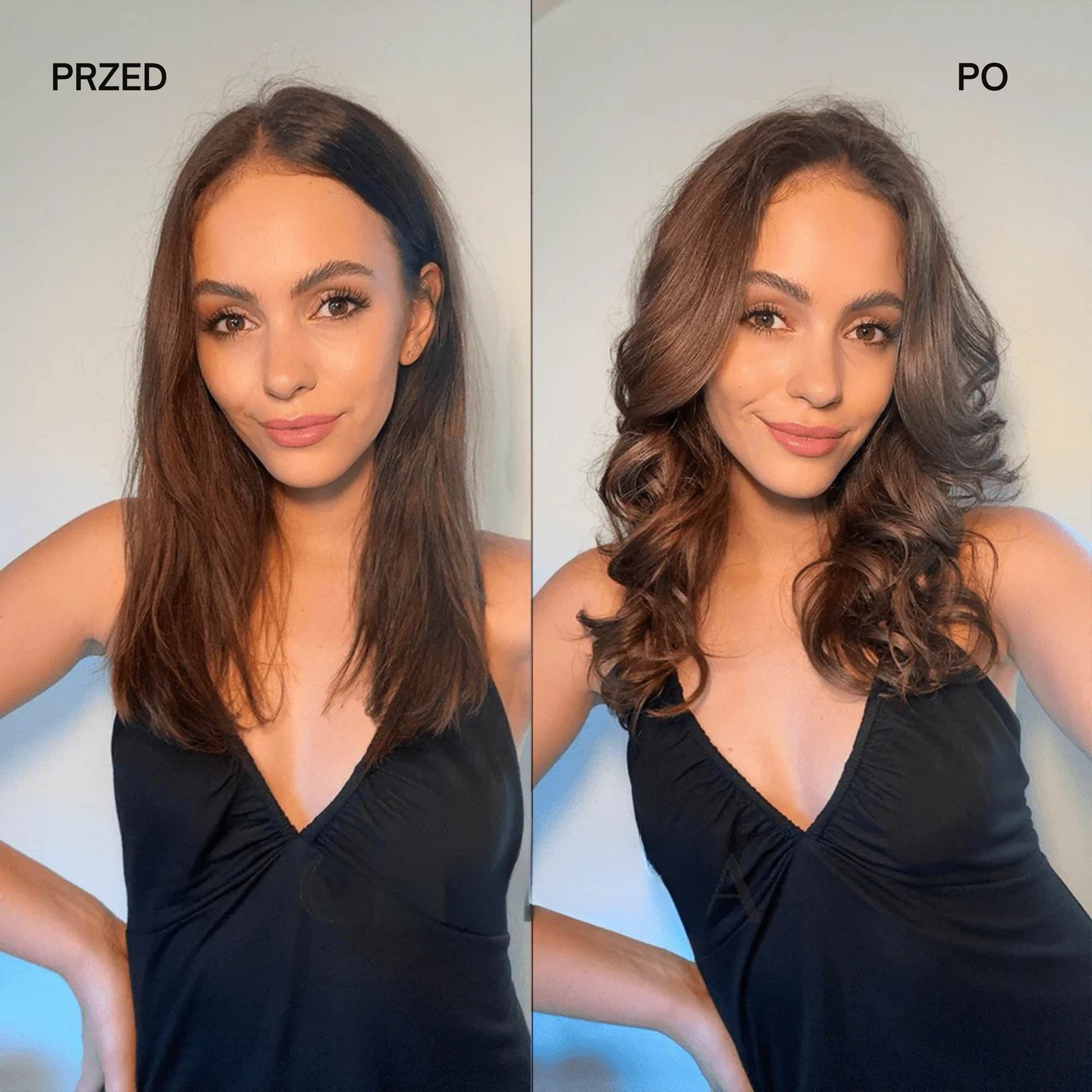 Jedno urządzenie, zero wymiennych końcówek — VolumeWave unosi, wygładza i podkręca włosy szybciej, lżej i bez przesuszenia.